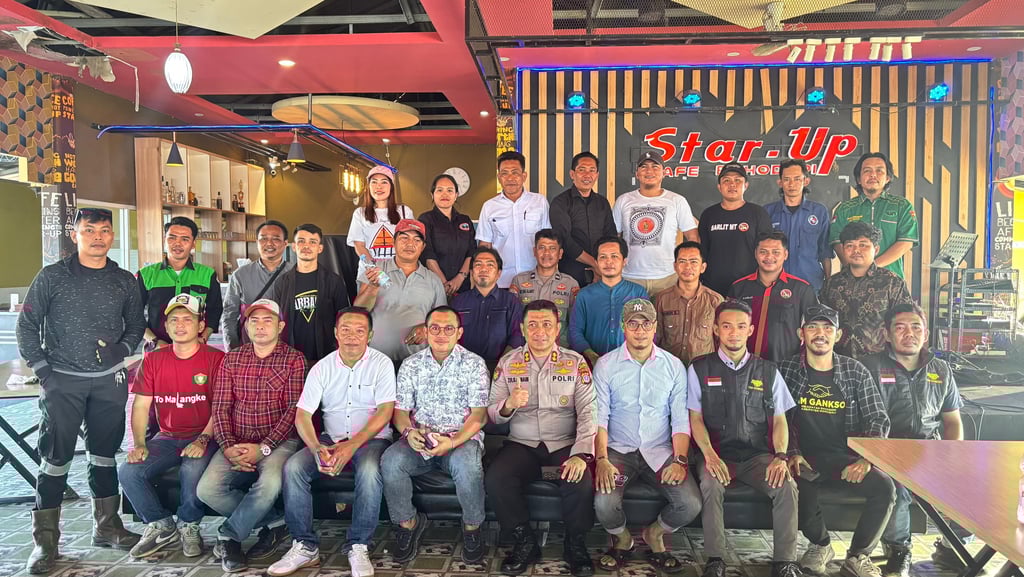 BAHODOPI, Morowali – Ketua Komisi I DPRD Morowali sekaligus Ketua Tim GANKSO Yopi Sabara menghadiri pertemuan yang digelar oleh Kapolres Morowali AKBP Zulkarnain, S.H., S.I.K., M.H. bersama jajaran komunitas di Star-Up Cafe Bahodopi, Jl. Pelangi Bukit Epe, Bahodopi, Jumat siang (12/12/2025). Pertemuan ini menjadi ruang diskusi terbuka antara masyarakat dan aparat keamanan dalam memperkuat stabilitas wilayah.